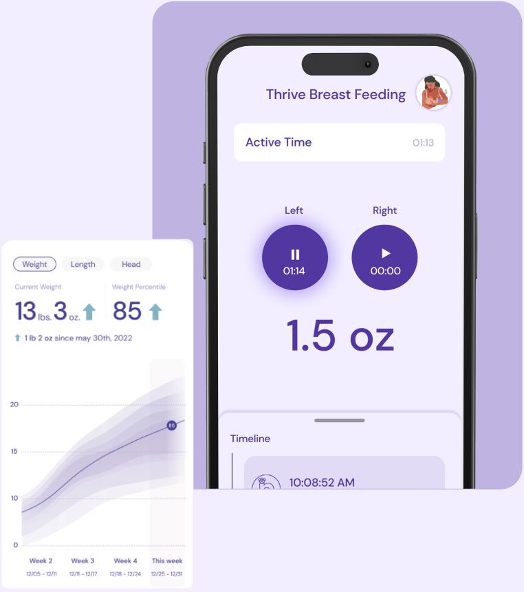 Our free app gives you insight into how your baby feeds, whether you’re using the Thrive Breast, Thrive Bottle or both.